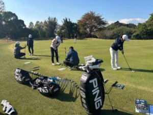 講習の後は、練習場・アプローチ・パターの後ハーフラウンドを行いました。
