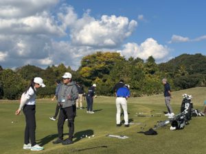 午前中、コース内の目土・ルール講習・練習場・アプローチ・パター